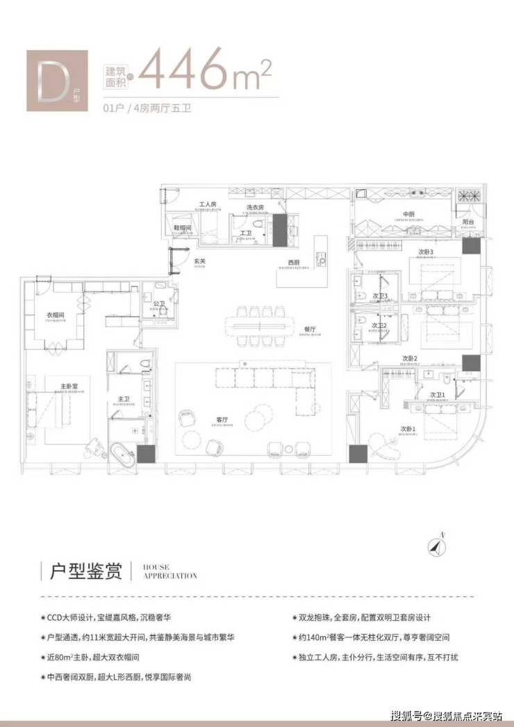 荟萃CCD、柏朗国际两大设计团队联袂匠造,以国际化视野,精研侨城湾芯云端新作,仅28席,位于建筑23-29层,全高区景观视野,建面约323-446㎡,纯粹大户云端居所。4款室内设计风格独特,尺度阔绰,兼顾细致实用,畅享舒适空间。