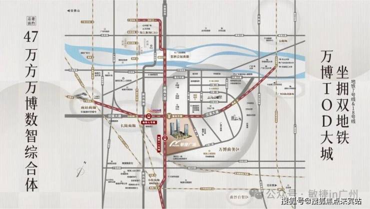 真正的 TOD 范本!项目负一层无缝接驳 7 号线、18 号线南村万博站,3 站琶洲、4 站珠江新城、5 站广州南站,未来 22 号线直达深圳,1 小时湾区生活圈触手可及。更坐拥五横五纵路网、广州南站高铁枢纽、广佛城轨等多维交通,日均超百万客流在此汇聚,财富动脉澎湃不息!
