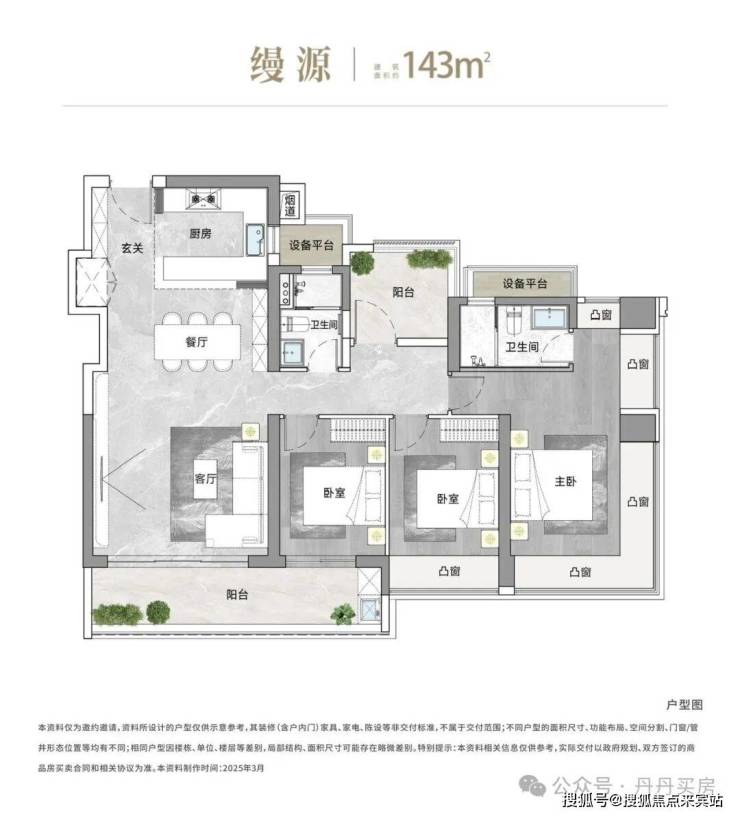【户型面积】建面约90-95-105-143㎡3-4房