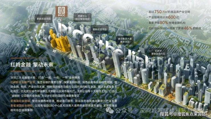 红岭新兴金融产业带,全市金融的重要引擎,探索金融科技、消费金融等金融衍生领域,推动金融、科技、产业协同发展,同时强调城市功能与公园环境的相互渗透,提出多元复合文化街区、优化提升城市环境等五大策略以及城市候机厅、天桥公园等十大特色工程,打造以“金融岭·公园里的金融街”为设计主题的国际化金融集聚区。