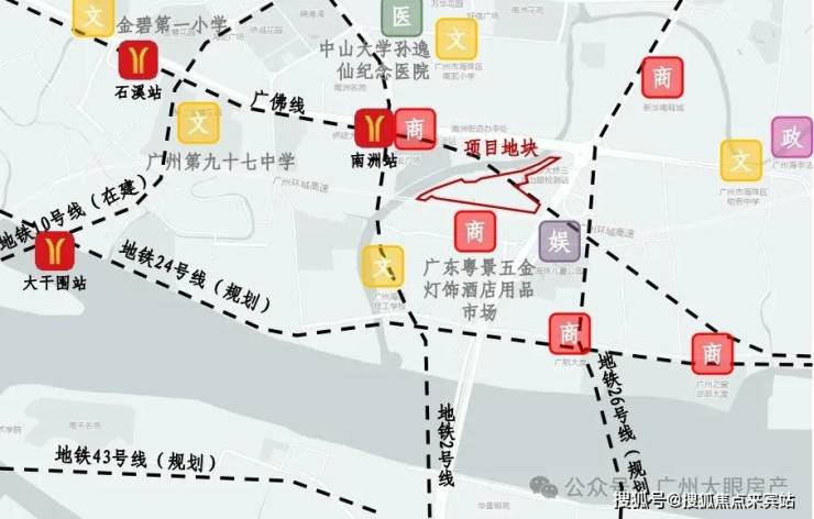 项目距离2号线和广佛线交汇的南洲站直线距离仅约500米,目前北濠涌规划引桥已开建,计划于今年内建成并开通,届时项目通达南洲地铁站将更为便捷。