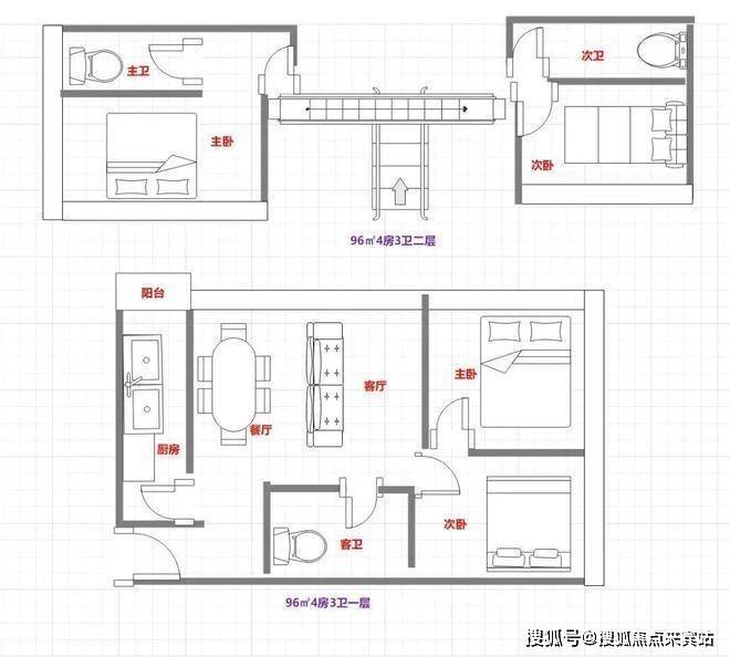 96㎡4房3卫