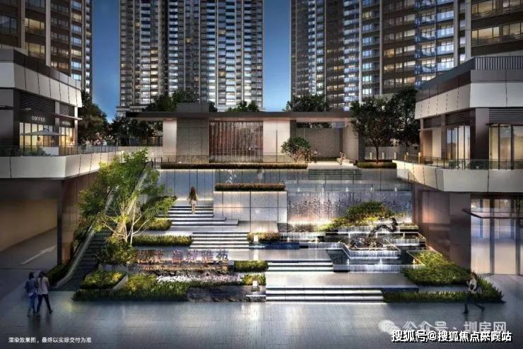 ✅【高抬水韵主入口】主入口叠水流瀑搭配罗汉松,高抬轩昂门庭彰显尊荣威仪,于步步高升中体验归家的仪式感。