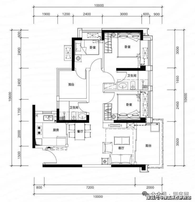 81㎡三房两厅两卫,空间利用极致,功能齐全。