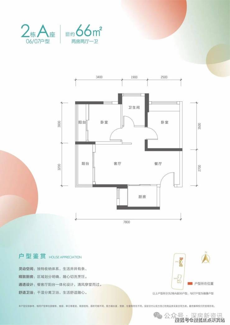 2栋A座06.07户型,设计的是竖厅格局,客厅3.2米开间,2个卧室分别做到了主卧9.9㎡/次卧9.1㎡(包含墙体飘窗),得房率约74.05%(不含赠送),朝西或朝东向。