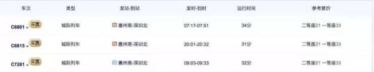 从深圳北出发,经厦深高铁至惠州南站约29分钟;从香港九龙站出发,经广深港高铁至惠州南站约1小时06分。(数据来源12306官网)