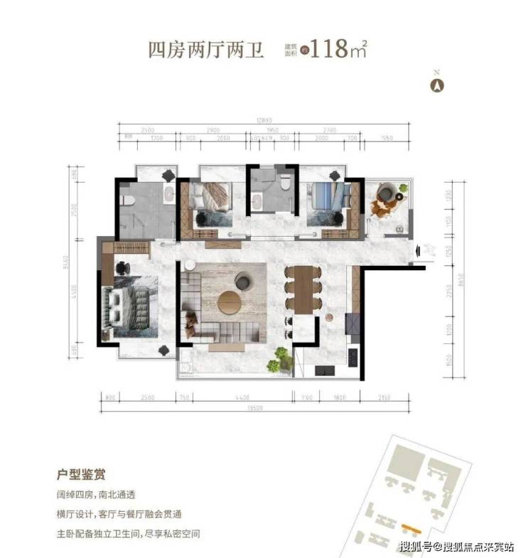 四房两厅两卫 建面约118.8㎡