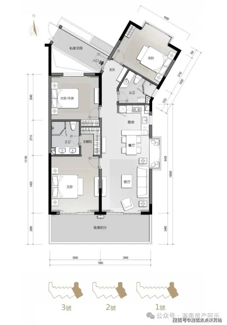 3栋低密纯板高层建筑,一字布局,南北通透,户户皆享超大观景阳台180°瞰海观山的极致视觉,海天山色尽收眼底。1.35绝版超低容积率只为成就223席高端舒适的完美胜境。