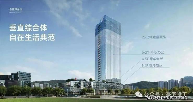 集合云端居住、奢雅会所、精粹商业、甲级办公为一体的垂直综合体,生活&休闲、社交&事业,悦然相逢,自在切换。