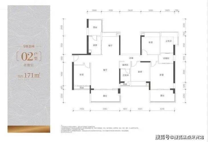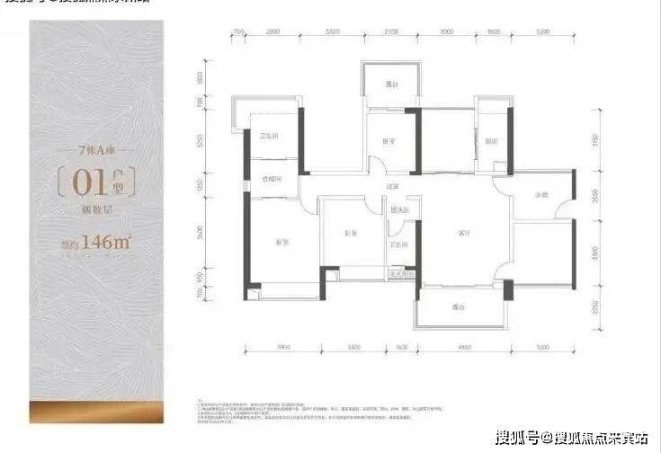 144平5房户型:全南向双龙抱珠,备案价6.87-8.04万,总价990-1166万,不带装修。得房率约118%,使用率可以收获170平的空间体验