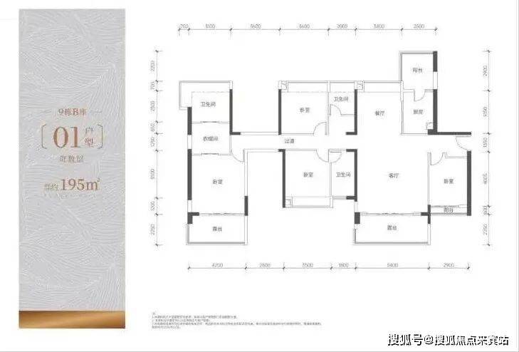 174平5房户型:南北通透,总价1224-1436万,带精装修。得房率约118%,使用率可以收获200平的空间体验,不光房间大,还房间多。