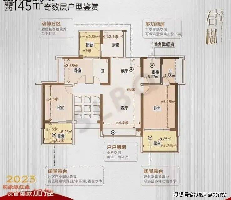 项目100%全南向大宅设计,80%南北通透臻罕户型,溪山君樾保留最大程度观景采光,在圳央大户型的设计中,绝少得见,为业主打造24小时自然通风的品质人居。溪山君樾采用户户多阳台设计,让家庭成员于湖山盛景中煮茗、阅读、观景,多维度纵享生活之美。