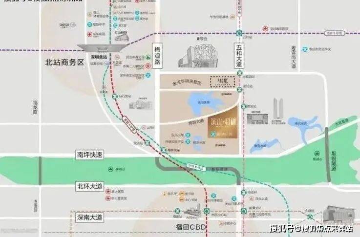 金光华溪山君樾项目地址:位于深圳龙华区梅坂大道236号,属于龙华民治街道。项目分三期开发,是集双拼、联排、叠加别墅,山景高层的湖区高端住宅项目。十年沉淀,配套成熟齐全,稀缺湖山资源价值,终极改善住宅。