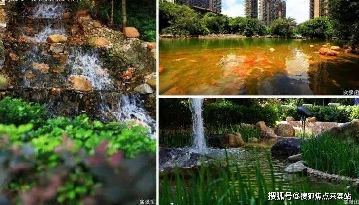 项目内部打造了一条沿着台地蜿蜒的溪流,该水系为市面罕见的活水溪流,贯穿整个社区园林,依据溪岸的曲直不同和地形变化,打造叠水、溪流、瀑布、水潭等多样特色水景,溪岸植物种类繁多,与水流互为风景,沿岸专门设置不同的亲水平台,营造自然灵动的栖心之境。