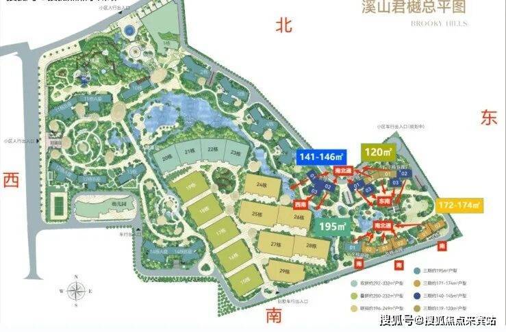 面积:120-195㎡4-5房;车位比:1700多个,1:1.15