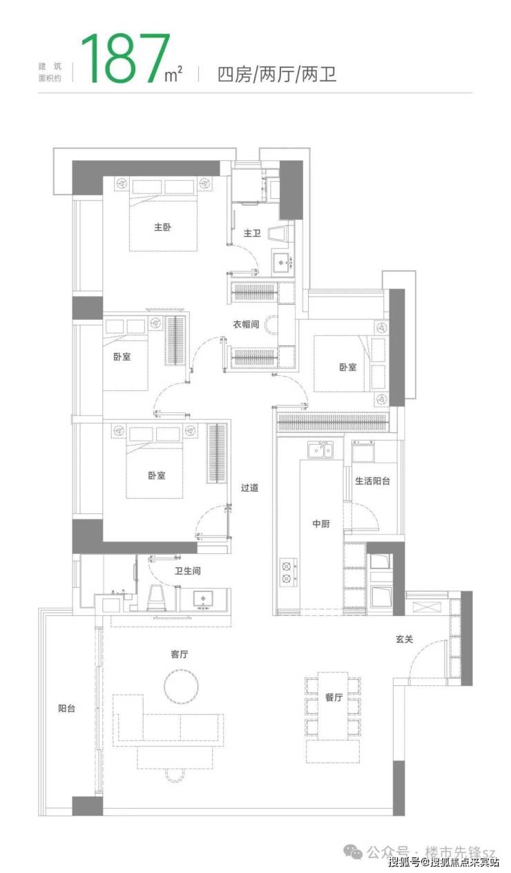 建筑面积约187㎡户型