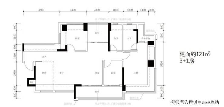 三、建面约121㎡户型:堪比旧规140+㎡户型