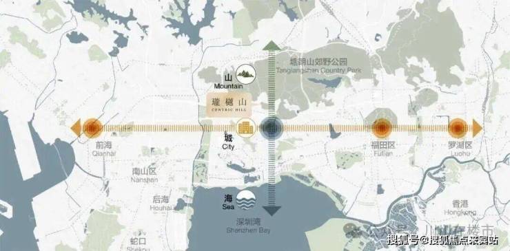 1、中心区域:深圳山海城中轴,左手香蜜湖、右手华侨城,六大总部基地环伺