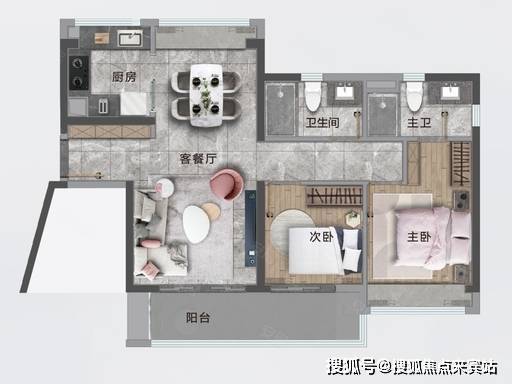 南北对流,双阳台设计,通风极佳,得房率约 103%。