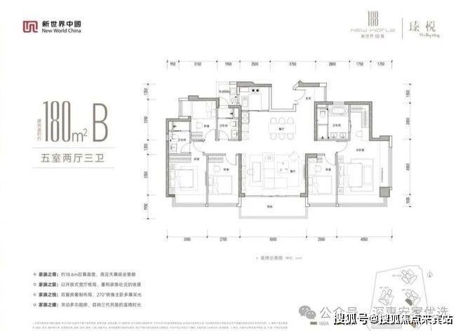 龙岗永湖,新世界188号臻悦(备案名:新璟曜广场),于今天开放样板房,计划在2026年5月份取证入市,本次将会首推05地块,面积有76㎡的3房1卫,88㎡的3房2卫,96-115㎡的4房2卫,180㎡的5房3卫户型,共1142套房源,新规设计,价格方面可以参考旁边的名居山河里,折后均价3.5万/平左右,初步预估总价在250万起,期房带精装交房