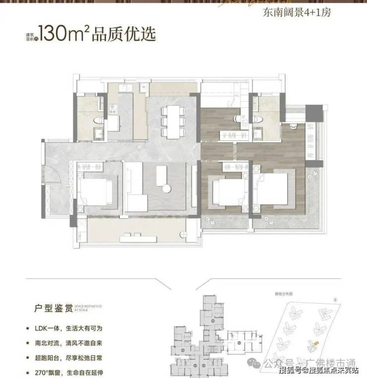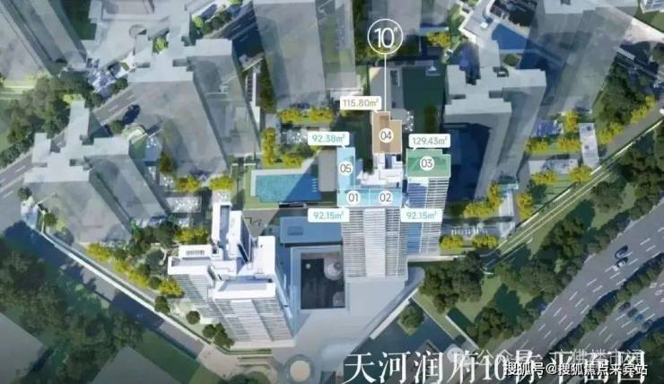 华润天河润府分为两个地块开发,北地块共建了4栋住宅,南地块则配建8栋住宅,目前主要在售北地块的1-2-4栋的尾货,今年年底就可以收楼,建面81-130平三至四房产品。