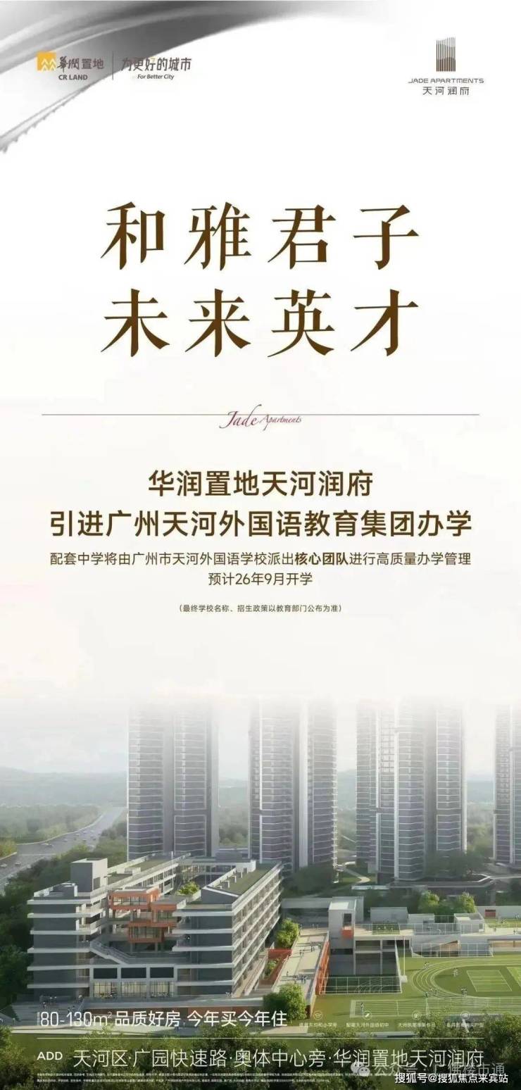 最近,华润置地天河润府官宣引入广州天河外国语教育集团办学,项目配建中学,天河东教育再添猛将!