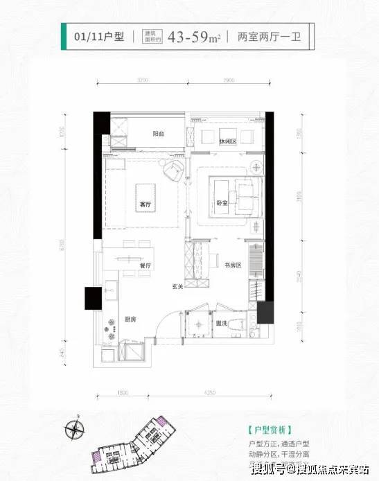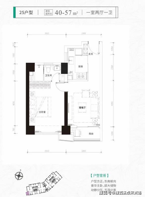 一房:34-40-46-57㎡总价:340-570万