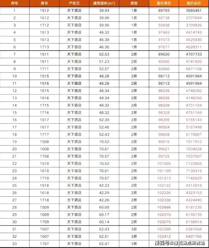 公寓户型价格:单价7-9万
