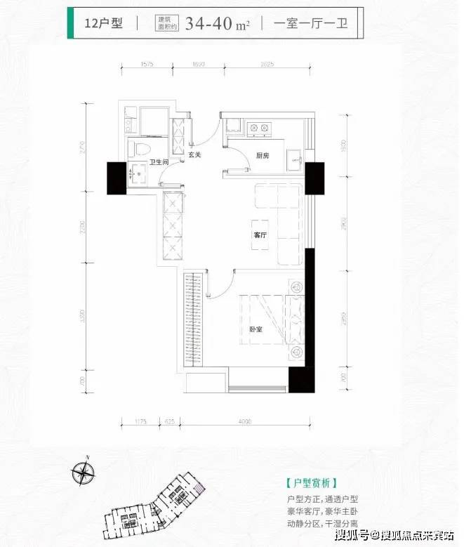 一房:34-40-46-57㎡总价:260-400万