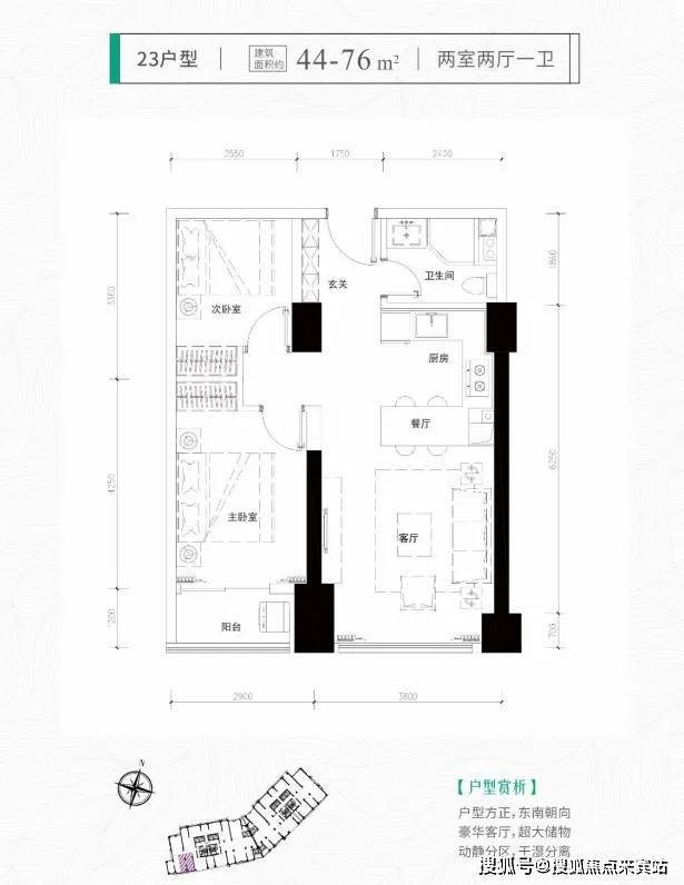 两房:35-44-52-61-76㎡总价:400-660万