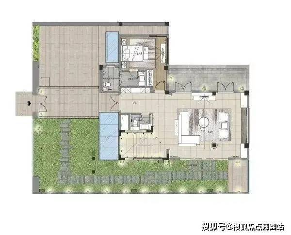 推门而出是因景入园的庭院,令原本位于底层的空间成为又一个首层;更自由的空间跳跃出地面,实现双首层360度无死角采光,成就罕见的“双首层”别墅。