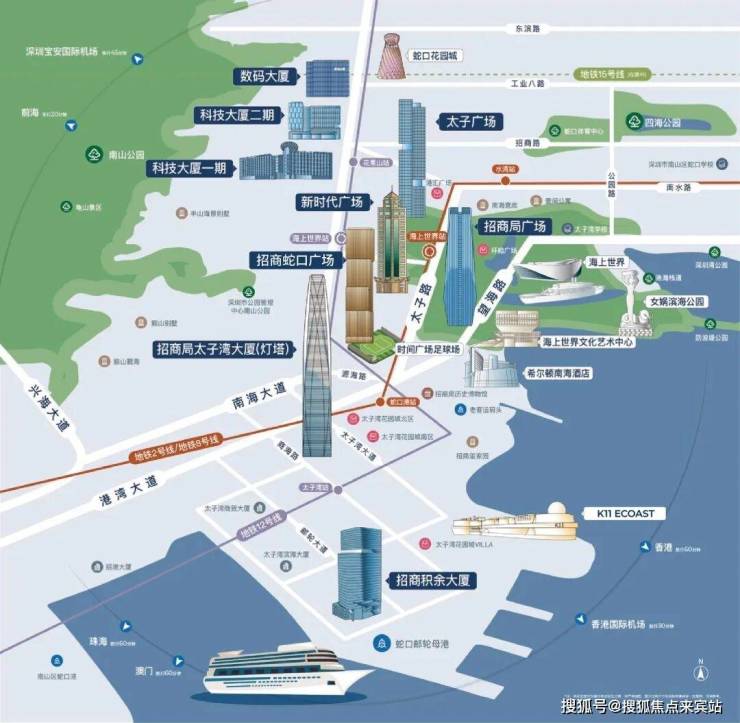 口岸:深圳湾口岸、蛇口邮轮中心、前海口岸(规划中),链接深港,通向世界