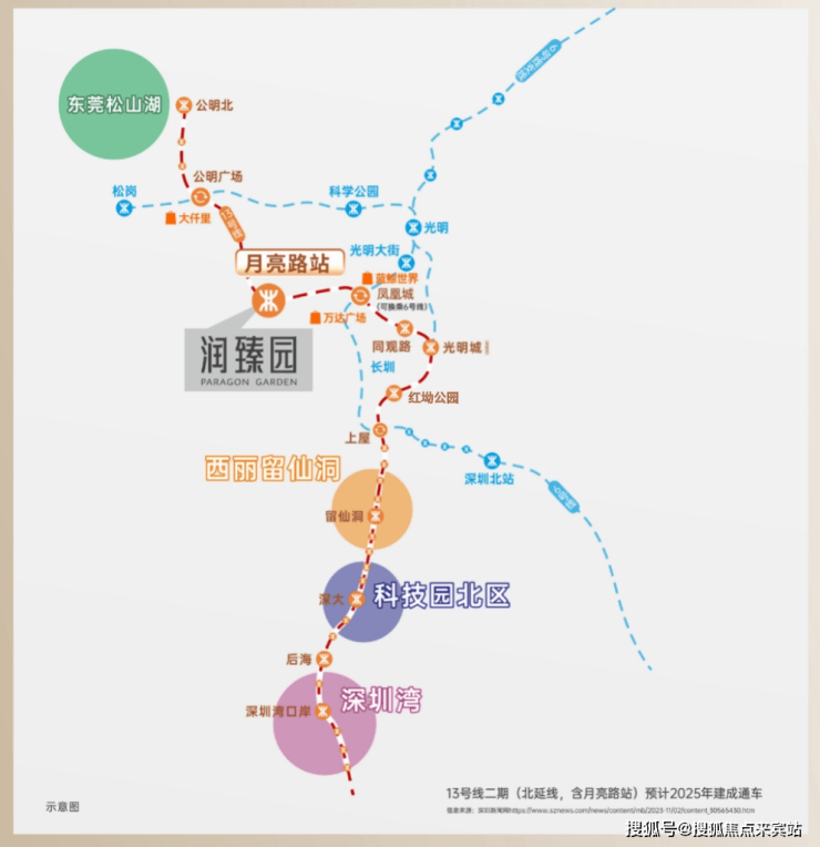 立体交通:轨道交通直线距离约600m到达地铁13号线月亮路站(建设中),1站凤凰城,9站到南山,2025年将推动13号线二期(北延)建成通车(信息来源:宝安日报),近享3纵4横公路网,咫尺松白路/东明大道双城市干道,东明大道松白路至东长路段已通车。