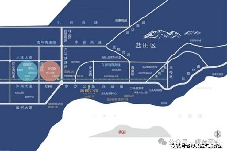 深圳蓝郡公馆地处盐田区沙头角街道沙深路西侧,与沙头角口岸紧密相依,具体地址为沙深路79号,是深港交界的核心口岸物业。项目北靠梧桐山这一大型城市绿肺,南望八仙岭与大鹏湾海景,既能坐拥山海双重景观,又处于盐田CBD的辐射范围内,紧邻盐田区政府等市政核心区域,同时无缝衔接深港两地,下楼即可通过沙头角口岸往来香港新界北,尽享深港一体化的便捷生活圈,周边建筑密度适中,兼具繁华与宜居的双重特质。