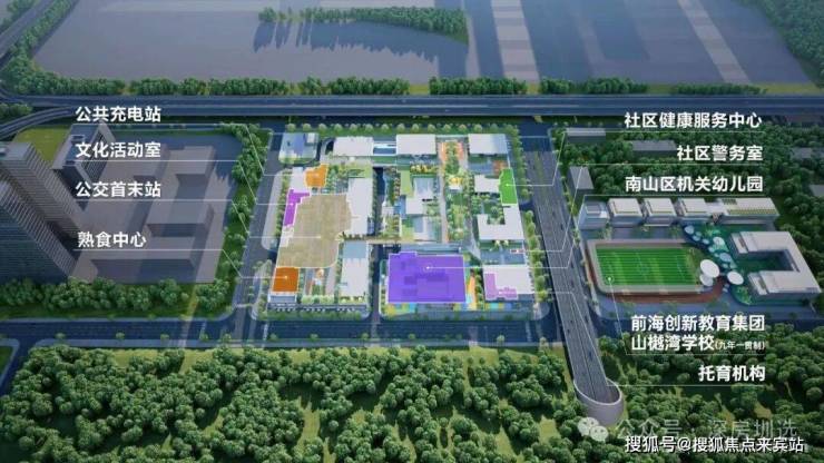 家门口配建托育机构、南山TOP1机关幼儿园,前海创新教育集团九年一贯制山樾湾学校(建设中)、一所初高中教育用地。