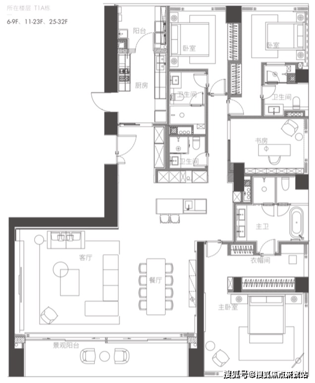 户型:232-280㎡3房,320-400㎡4房,468-610㎡5-6房