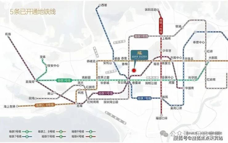 项目距离最近的地铁站是9号线香梅站和1号线香蜜湖站,地铁1号线香蜜1站车公庙,2站福田中心,3站后海深圳湾,项目离9号线香梅站300米,步行5分钟,1号线香蜜湖站500米,步行8分钟。