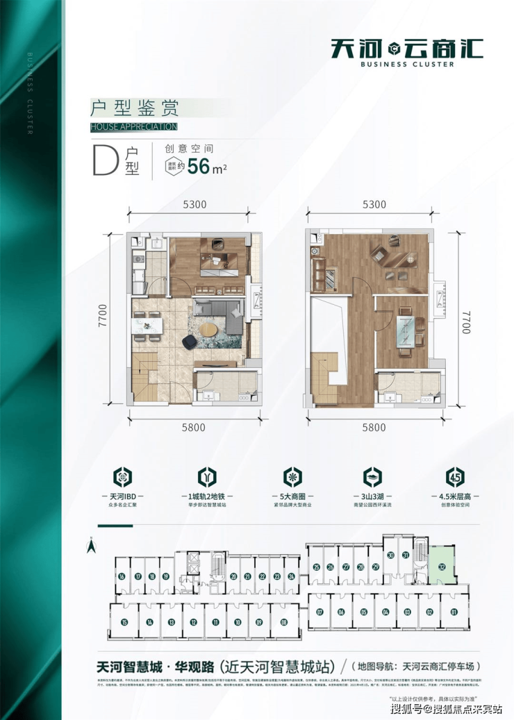 其中,创意LOFT建筑面积约30-55㎡,企业总部建筑面积约155-900㎡,总套数约1700套。