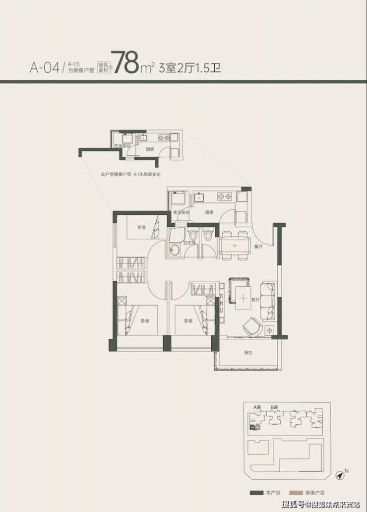78㎡能做到三房+1.5卫+双阳台,功能性已经可以吊打科技园100㎡的新房。户型设计比较方正,1.5设计比较人性化,毕竟若三四口之家居住,多个马桶生活质素会提高很多。