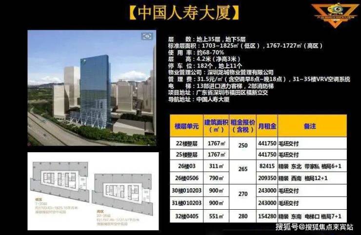 6、在租面积约311-551-900-1767㎡,标准层面积约1700-1850㎡,使用率约70%