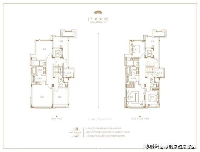 上叠,建面约240㎡,独立入户,首层是独立会客厅和长辈房,二层是三间卧室。
