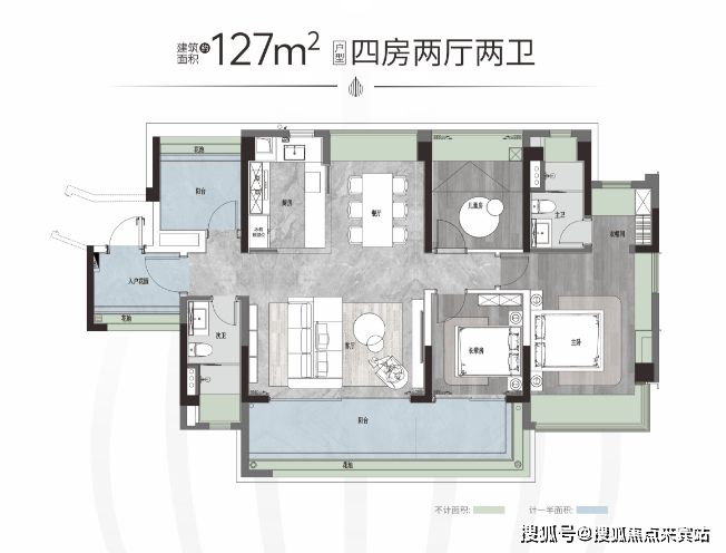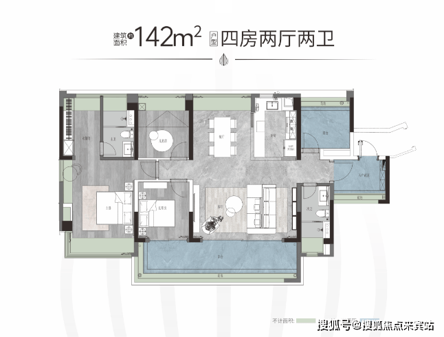 【户型面积】建面约125-142㎡四房两厅两卫/214-319㎡大平层
