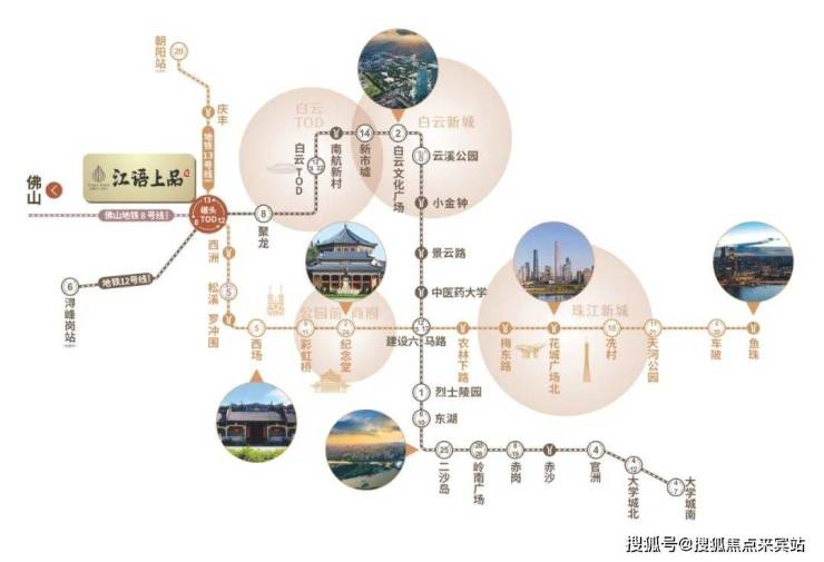 广州12号线、13号线、佛山8号线交汇,贯穿广州东西人文经济大动脉,广州五大区域核心版块无缝直达。