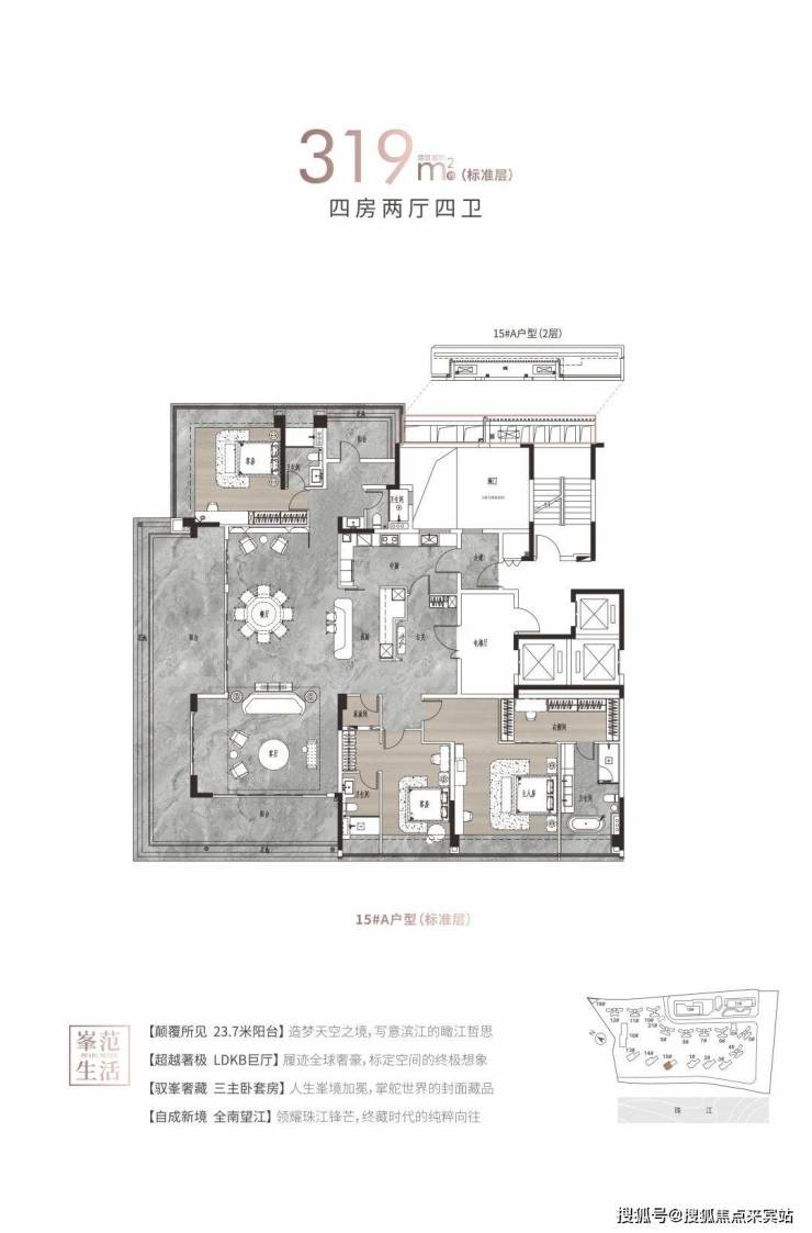 白云首个珠江大平层,125-142㎡南向江景4房,214-319㎡大平层,超高使用率,江景豪宅,市场罕有