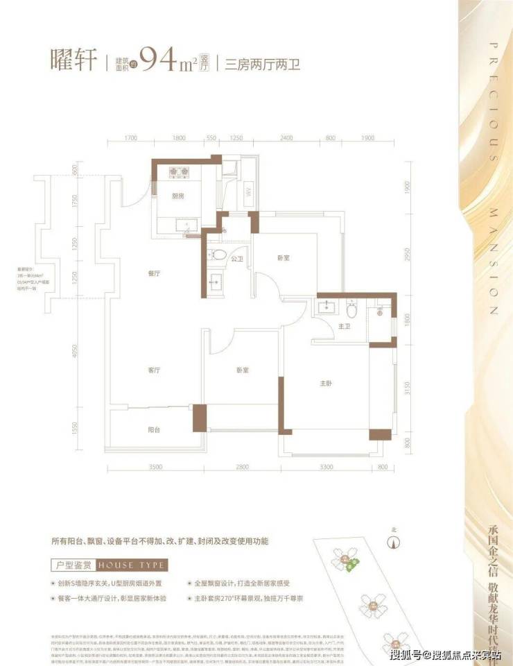 建面约94㎡的三房两卫户型(横厅),设计横厅南北通透格局,独门独户。