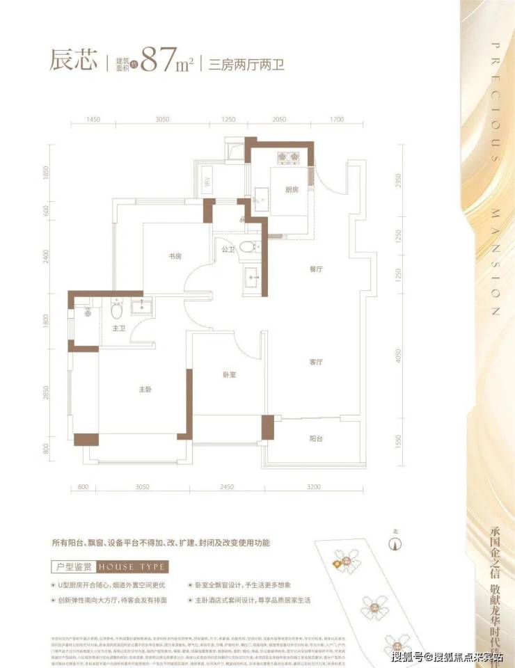 建面约87㎡的三房两卫户型,进阶家庭的首选。