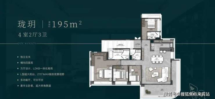 195㎡珑玥:22㎡景观客厅+23㎡餐厨空间,奢阔尺度匹配高端圈层。