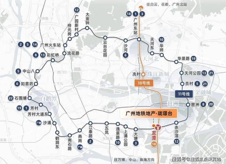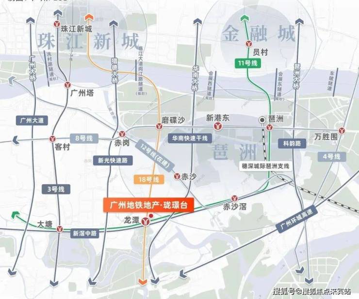珑璟台占据琶洲南TOD核心区位,与地铁18号线龙潭站无缝接驳,一站直达琶洲西区,两站至珠江新城,三站至金融城。未来11号线(在建)通车后,将形成“双地铁+环线”立体交通网,快速串联荔湾、天河等核心区。