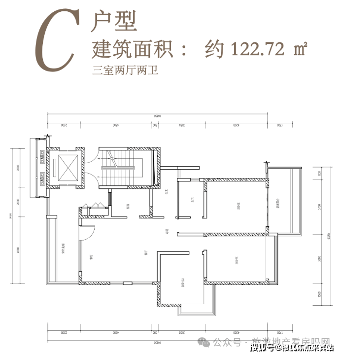 3#平层图:主力户型为80㎡两房、97㎡两房、110㎡三房、122㎡大三房