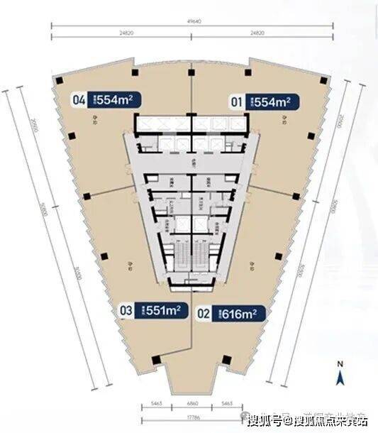 约198米甲级总部商务写字楼,建面约419-2000㎡(标准层)准现楼。